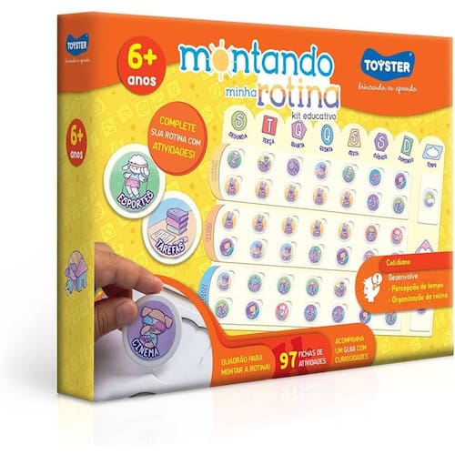 Ensine o conceito de passagem do tempo montando um divertido quadro de rotina. A criança tomará o conhecimento da própria rotina, adquirindo responsabilidades e desenvolvendo a habilidade de se organizar. Este produto acompanha um guia com curiosidades!