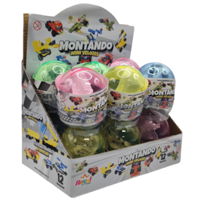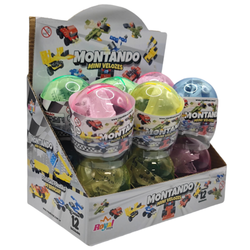 Prepare-se para uma corrida cheia de adrenalina com o Montando Mini Velozes! Esta caixa contém 12 cápsulas surpresa, cada uma com blocos de montar que formam veículos rápidos e dinâmicos.