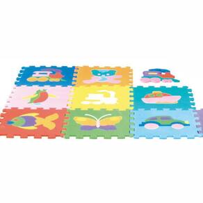 Conjunto de 9 placas em e.V.A. Colorido, com figuras variadas: borboletas, pinguim e carro, que desmontado se transforma em um grande quebra-cabeça. Placas de 33 x 33 cm e 8 mm de espessura.