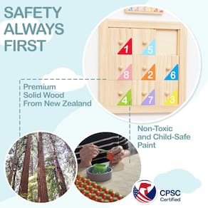 - SEGURANÇA EM PRIMEIRO LUGAR: Fabricados com madeira maciça da mais alta qualidade da Nova Zelândia, nossos brinquedos sensoriais de parede passaram por rigorosos testes de segurança e receberam o Certificado de Produto Infantil de um laboratório credenciado pela CPSC, garantindo um ambiente de jogo seguro para os pequenos.