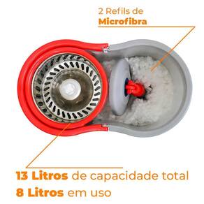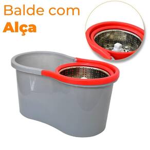 Conta com um balde com 13 litros total e 8 litros em uso, que comporta o produto para limpeza de sua preferência e cesto em inox para a secagem e limpeza do esfregão.