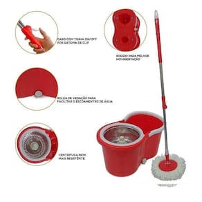Mop Esfregão Giratório de Limpeza Inox com Rodinha e Refil Cor: Vermelho Com o Mop Rotatório a sua limpeza será muito mais fácil, prático, durável e eficiente O Mop vai substituir a vassoura, o rodo e o pano de chão, tem grande poder de absorção, pode ser em pisos frios, sintéticos ou amadeirados etc. Evita contato com produtos químicos e água e sujeira. --------------------------------------- ----------------------------------------- Características: - Centrifuga inox; - Trava para regulagem de altura e função giratória on/off; - Escoamento de água com tampão; - Alça flexível para transporte e manuseio; - Acompanha 2 refil de microfibra; - Cabo telescópico em aço inoxidável ajustável. Dimensões: - Altura: 21 cm; - Largura: 25,5 cm; - Comprimento: 45 cm; - Altura máx. Do cabo: 1,28 m; - Capacidade do balde: 12 litros em total e 7 litros em uso. Marca: Não Informado