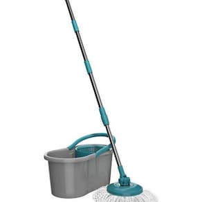 O balde possui capacidade total de 8 litros, próprio para lavar e torcer o esfregão, sem a necessidade do contato das mãos com os produtos químicos.