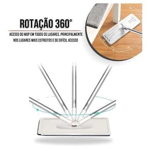 Vai substituir a vassoura, o rodo e o pano de chão na hora da limpeza. Com seu grande poder de absorção, graças a seu refil de microfibra que absorve a água e a sujeira muito mais rápido e com muito mais facilidade, possui MOP giratório 360 super eficiente e prático.