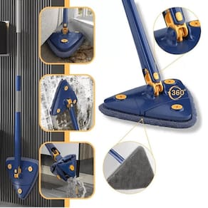 Mop De Limpeza Triângulo Ajustável Giratório 360 Esfregão Rodo Limpa Pisos Vidros Cor: Azul Mop De Limpeza Triângulo Ajustável Giratório 360 Esfregão Rodo Limpa Pisos Vidros