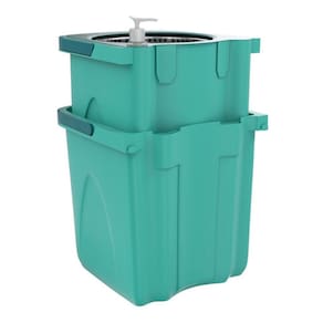 Além disso, ele é composto por dois baldes empilháveis que garantem economia de espaço. Para usar, basta encaixar um balde no outro, colocar água no balde de enxágue e ele está pronto!