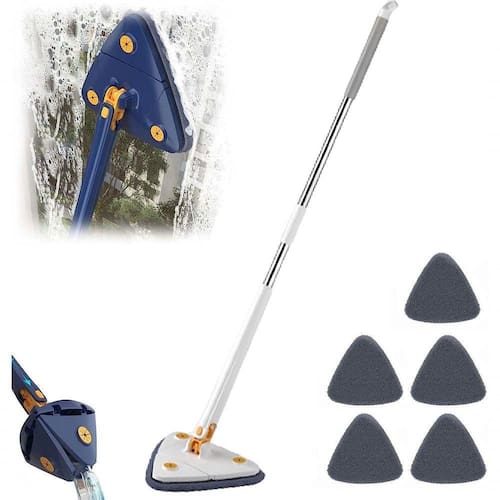 O Mop Triangular é um esfregão giratório versátil, extremamente moderno e com design ergonômico. Projetado para facilitar a sua vida na hora de limpar a casa, suas funcionalidades surpreendem até os mais experientes quando o assunto é limpeza do tarefa de limpar precisa ser o mais simples possível. Para isso, ele conta com uma bandeja de limpeza com design triangular e cabeça giratória de 360 graus, permitindo que você não deixe poeira no canto morto, resolvendo facilmente o que antes parecia impossí as poeiras em cantos mais altos, o Mop Power com uma haste extensível, que pode o deixá-lo com até 1,22 metro de comprimento. Sem esticar muito os braços, você consegue elevá-lo a uma boa altura e com muita seguranç Mop não é só um objeto de limpeza que elimina poeiras. Seu esfregão é equipado com um pano de microfibra engrossado e nanotecnologia, que pode absorver água rapidamente em 5 segundos e possui excelente capacidade de adsorção, travando firmemente a ê pode, também, limpar outras substâncias líquidas, como gordura, assegurando ao máximo a versatilidade deste produto. Para esta tarefa, o Power Mop possui a função de espremer, que tira todo o excesso de líquido da microfibra, sem que você precise agachar. Tudo isso graças a tecnologia push-pull integrada ao produto. Não é maravilhoso?!Cores Enviadas Aleatórias Conforme Disponibilidade em Estoque, Podendo ser na cor Azul ou BrancoSolução ideal para uma limpeza ainda mais completa e eficiente! Com seu formato triangular, ela é perfeita para alcançar os cantos e áreas de difícil acesso, garantindo uma limpeza profunda em todos os tipos de pisos, como madeira, cerâmica e porcelanato. Sua cabeça giratória permite movimentação livre e fácil, enquanto seu sistema de torção automático remove o excesso de água sem esforço. Além disso, sua haste telescópica possibilita ajustá-la na altura ideal para cada usuário.- 2 em 1: limpa, seca e dá brilho- Para todos os tipos de vidros, box, azulejos e superfícies lisas- Não utilizar na máquina, lavar apenas à mãoESPECIFÍCAÇÕES:- Material: Plástico; algodão; alumínio; poliéster- Dimensões aprox. (Altura): 122cmItens Inclusos01 Rodo Mop 05- Pano Microfibra