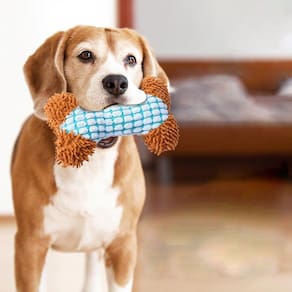 A textura resistente do tecido de algodão e poliéster ajuda a manter os dentes do seu cão limpos, reduzindo a formação de tártaro.