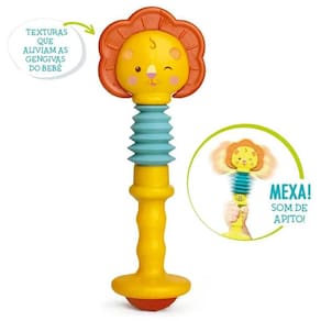 Mordedor e Chocalho de Bebê - Esticadinho - Leão - Elka: o Chocalho Esticadinho possui pega confortável para que o bebê o segure firme sem incômodos. Ideal para os primeiros meses de vida. As cores vibrantes, sons e formas ajudam a desenvolver as percepções auditiva e rítmica do pequeno, além da coordenação motora. O Chocalho Elka é macio e gostoso de morder, ajudando o alivio de coceiras e dores na gengiva e fortalecendo a musculatura da mastigação, além de facilitar o nascimento dos primeiros dentinhos. Com material resistente e atóxico para a segurança do pequeno. Possui selo de segurança e testado pelo INMETRO. Informações: • Produto: Chocalho Esticadinho - Leão • Marca: Elka • Coleção: Esticadinho • Tipo: Chocalho e Mordedor infantil 2 em 1 • Categoria: Chocalhos para bebê • Conteúdo: 01 Chocalho • Recomendação: para crianças a partir de 03 meses de idade Especificações: • Referência: 1111 • Código de Barras: 7896448111117 • Embalagem (C x A x L): 15 x 24 x 05 cm • Embalagem (Peso): 0.070 g • Material / Composição: Plástico, PVC e tinta atóxico, apito e parafuso • Registro: 000 984/2019 • Certificado: Órgãos Autorizados - OCP´S (Organismos de Certificação de Produtos) Aviso: • As imagens são meramente ilustrativas • Os pesos, tamanhos e medidas são aproximados • As cores e estampas dos produtos podem ter variações • As informações são de responsabilidade do fabricante ou fornecedor