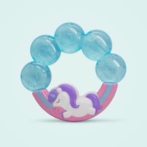 Mordedor infantil argola com agua textura macia massagear gengiva bebe buba Cor: unicornio Procurando um produto que ajude seu bebê durante o período de nascimento dos primeiros dentinhos Apresentamos o mordedor com água da buba