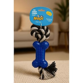 Mordedor para cães com corda resistente e divertido Proporcione mais diversão, bem-estar e saúde para o seu pet com o brinquedo interativo pet chup chup da marca napi. Desenvolvido especialmente para cães de todos os portes, este brinquedo combina dois elementos fundamentais para a saúde bucal e o entretenimento dos pets: corda de trançado resistente e mordedor em formato de osso com textura massageadora. O brinquedo é composto por uma corda grossa, feita em algodão trançado de alta resistência nas cores preto, branco e cinza, ideal para brincadeiras de puxar, morder e estimular o instinto natural de caça dos cães. Na extremidade inferior, conta com um osso de borracha azul texturizado, que serve como mordedor. Essa superfície com relevos ajuda a massagear a gengiva, auxiliar na limpeza dos dentes e contribuir para a saúde bucal do animal. Produto fabricado com materiais duráveis, pensado para suportar mordidas e garantir maior durabilidade, mesmo com uso frequente. Além disso, o brinquedo é uma excelente forma de evitar o , ansiedade e o tédio nos momentos em que o pet está sozinho, promovendo uma rotina mais ativa e saudável. Benefícios: Estimula o instinto natural de mastigação e caça; Ajuda na limpeza dos dentes e saúde das gengivas; Ideal para brincadeiras interativas e exercícios físicos; Ajuda a evitar comportamentos destrutivos; Indicado para cães de pequeno, médio e grande porte; Material resistente e seguro para o pet; Pode ser utilizado em atividades de adestramento. Marca: Não Informado