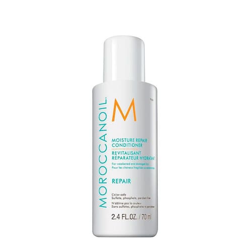 O Moroccanoil Moisture Repair Condicionador 70ml é perfeito para cabelos danificados, com óleo de argan e queratina para reparação e hidratação. Livre de sulfatos, parabenos, cruelty-free, com frasco compacto, oferece brilho, elasticidade e cuidado profissional.