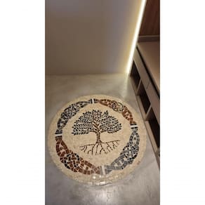Piso mandala em mosaico feito com pedras