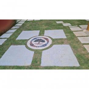 Pedras utilizadas: Travertino Bege, Granito Vermelho Guaíba, Granito Azul Bahia, Tons de Verdes, Mármore Verde Alpi, Verde Ubatuba e Verde Florest, Mármore Branco espirito santo, Granito Marrom Guaíba e Granito Preto São Gabriel. Os tons podem variar conforme o lote das pedras.