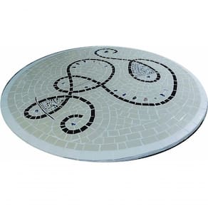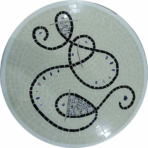 Especificações técnicas do mosaico: Feito com cerâmicas e porcelanas de alta resistência; Borda com acabamento em mosaico Vem montado sobre uma chapa cimentícia leve, o que permite leveza ao mesmo tempo, de alta durabilidade; Resistência e Durabilidade em área interna e externa; Espessura de 20mm Espessura igual à tampos de mármore ou granito Liso e agradável para uso diário; Mosaico feito integralmente à mão com técnica do mosaico romano