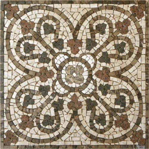 Especificações técnicas do mosaico: Feito com pedras - Mármores e granitos de todo o Brasil e importados da Europa e Ásia - para obter todas as cores desejadas em pedras naturais; Vem todo montado sobre tela, só colocar conforme manual de colocação, Resistência e Durabilidade em área interna e externa; Espessura de 10 mm Mesma espessura do porcelanato ou piso cerâmico Liso e agradável para uso diário; Mosaico feito integralmente à mão com técnica do mosaico romano;