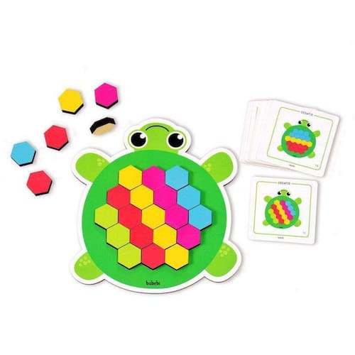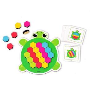 Uma simpática Tartaruguinha e diversas peças coloridas para montar e brincar com o mosaico. São 24 sugestões de design para reproduzir no tabuleiro ou simplesmente deixar livre a imaginação e criar centenas de possibilidades. Trabalha o raciocínio lógico, atenção, concentração de maneira lúdica e criativa. Feito de madeira reflorestada. Contém 1 tabuleiro em formato de tartaruguinha (25x23cm), 60 peças coloridas (3×3,5cm) e 12 fichas com 24 maneiras para reproduzir. Indicado para crianças a partir de 3 anos. Recomenda-se a interação de um adulto. Não recomendado para menores de 3 anos por conter partes pequenas que podem ser engolidas. Utilizamos materiais seguros, duráveis e ecológicos.