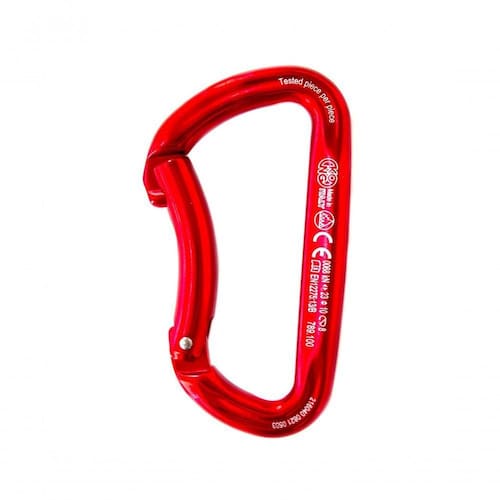 Mosquetão Alumínio Trapper Anniversary Sem Trava 23kn Curvo Ce Uiaa Kong Mosquetão assimétrico em alumínio anodizado sem trava curvo marca Kong. Um formato diferenciado bem leve e prático, este mosquetão é nas mais diversas atividades em altura, como içamento de material, construção de costuras, sistemas de segurança e as mais diversas atividades em altura, onde permita a utilização de mosquetão sem trava extra de segurança. Possui sistema keylock ou catch free, onde a saída do mosquetão é reta, permitindo a colocação e retirada de materiais têxteis, sem enroscar na saída do mosquetão. Este modelo é testado e aprovado pela Comunidade Européia bem como pela UIAA. Características Técnicas: Material: Alumínio. Sistema de Fechamento: sem trava curvo. Peso: 50g. Comprimento: 99mm. Abertura do gatilho: 23mm. Carga de ruptura: 23KN. Certificação Internacional: CE UIAA. Marca: Kong IPI: 5.0% (INCLUSO) undefined