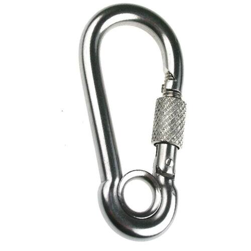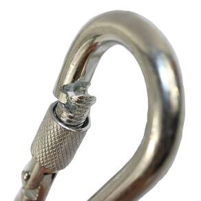 Mosquetão inox Descrição do produto Acessório multiuso, utilizado para fixação de cabos, chaveiros, cordas. Construído em aço 316 de alta resistência para utilização em ambientes marinhos. Informações adicionais: Material: inox 316 Alta resistência Trava de segurança Tens inclusos na embalagem: 01 mosquetão inox Marca: Não Informado Ean: 7908779878161