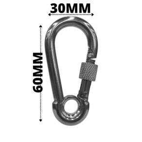 ITENS INCLUSOS: 01 Mosquetão Inox Com Trava 6MM x 60MM Com Olhal