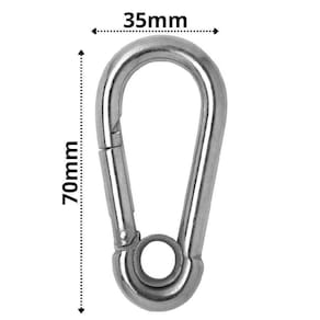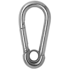 Mosquetão Inox Engate Rápido Com Olhal 7mm Mosquetão de Engate Rápido com Olhal em Aço INOX 316. Para diversas finalidades na área náutica e outras atividades. Construído de acordo com a norma DIN 5299, com 7mm de Espessura.