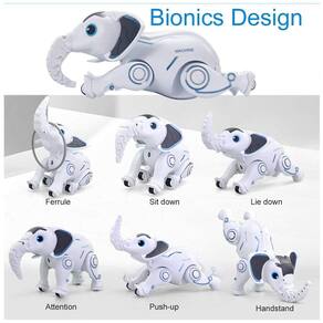 Funções abrangentes instruções ativadas por voz, andar, agachar se cantando, sentar se, parada de mão, dizer olá, flexões, nariz para cima e para baixo. Você também pode controlar o volume. Função de programação Você pode programar as ações em seu elefante e ele repetirá as ações que você programou. Operação Simples Todas as funções são exibidas claramente no controle remoto e, com comandos de voz, as crianças podem brincar facilmente. Interação divertida O mais interessante é que você pode atirar uma ponteira para um elefante e ela pode pegá lo com o nariz. Melhor presente para crianças Bateria recarregável de 3,7 V 600 mAh pode fornecer mais tempo de jogo. É o melhor presente de aniversário , Natal , feriado Marca: Não Informado