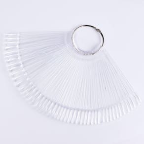 Especificação: Dimensões: 12 cm x 1 cm (A x L) Material: Acrílico Modelo: Natural Transparente Contém: 50 unhas e 1 argola