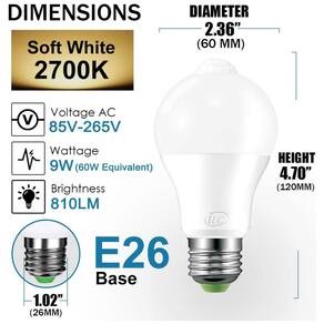 Modo de inspeção de qualidade Seja dia ou noite, acenderá por 60 segundos. Este é o modelo mais recente de lâmpada com sensor de movimento HEKEE. A tampa translúcida usa material personalizado, alta transmitância de luz, difusão uniforme de luz, também tem tecnologia de sonda dupla inteligente ultra sensível. Quando o ambiente é claro, não funciona. Quando o ambiente está escuro, ele começa a funcionar. Muito adequado para escadas, corredor, banheiro, despensa, varanda, portão e assim por diante. Tecnologia avançada de controle de iluminação permite lâmpadas com sensor inteligente HEKEE com sensor integrado do crepúsculo ao amanhecer. As lâmpadas HEKEE entrarão automaticamente no modo de detecção quando a escuridão for inferior a 10lux isso acontece ao anoitecer ou durante a noite quando a escuridão cai. A lâmpada HEKEE Led acenderá quando o detector de movimento for ativado. Não será ligado durante o dia, pois a intensidade da luz aumenta até 10 Lux, o que pode economizar energia, prolongar a vida útil da lâmpada. PIR tecnologia de movimento térmico infravermelho inteligente lâmpada HEKEE Sensor de movimento com o modelo de detecção de indução infravermelho inteligente que acende as luzes automaticamente quando o movimento humano ou animal na escuridão dentro da faixa de detecção. Ele será desligado cerca de 30 segundos após você sair da área. A distância de detecção é de cerca de 2 a 6 metros, dada a altura de instalação e outros fatores. Esta lâmpada com sensor de movimento PIR NÃO funciona através de vidro ou qualquer tampa de lâmpada e deve ser instalada para baixo. Tecnologia inteligente de detecção contínua de movimento as lâmpadas com sensor de movimento HEKEE LED continuam detectando atividades humanas dentro da faixa de detecção. se você não tiver saído da área, ele ligará o tempo todo, mesmo que passem 30 segundos. A contagem regressiva de 30 segundos começará a partir do seu último movimento, então você não precisa se preocupar com a lâmpada do sensor de movimento IR desligar repentinamente quando você ainda estiver na faixa de detecção Marca: Não Informado