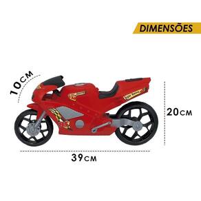 Material: Polipropileno e Adesivo Dimensões: Comprimento 39 cm x Altura 20 cm x Largura 10 cm Peso: Aproximadamente 300 g Cor: Vermelha Detalhes: Rodas esportivas, carenagem aerodinâmica, pezinho de apoio para ficar em pé Conteúdo: 01 SUPER MOTO 360 ESPORTIVA - VERMELHA Registro Inmetro: 000447/2018