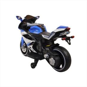 Moto Azul Criança Rodinha De Suporte Bateria 12V Música Usb
