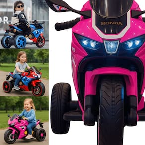 O modelo está disponível em três versões vibrantes que encantam crianças de diferentes estilos: Azul, Vermelho e Rosa. Cada uma delas com acabamento brilhante e grafismos modernos que valorizam o visual esportivo da moto.