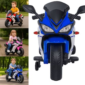 Com estrutura robusta em plástico de alta resistência e reforços em aço carbono, essa moto elétrica oferece assento confortável, apoio para os pés e rodinhas de apoio que aumentam a estabilidade, tudo para que a criança possa se divertir com mais confiança.