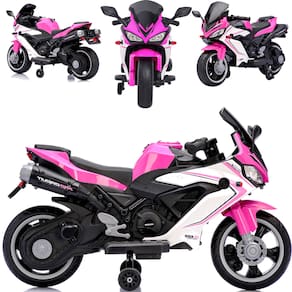 Com estrutura robusta em plástico de alta resistência e reforços em aço carbono, essa moto elétrica oferece assento confortável, apoio para os pés e rodinhas de apoio que aumentam a estabilidade, tudo para que a criança possa se divertir com mais confiança.
