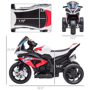 Moto Elétrica Infantil BMW a Bateria 6V 3 Rodas com Sons e Luzes, Idade Rec 2 a 8 Anos, AOSOM, Vermelho
