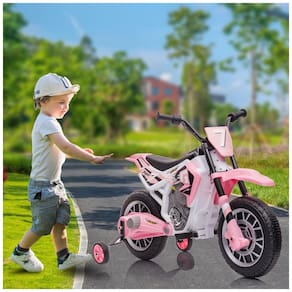 RODAS DE FORMAÇÃO PARA SEGURANÇA MAIS ALTA Existem 2 rodas de treinamento removíveis que mantêm a bicicleta elétrica de sujeira o mais estável possível para permitir maior segurança. Motive seu filho para ficar com este divertido e emocionante veículo de brinquedo. Não se esqueça de desconectar as rodas de treinamento para obter uma direção mais suave quando o seu filho estiver pronto para desfrutar de dirigir uma moto elétrica. Além disso, a motocicleta foi projetada com mola de absorção de choque, garantindo que ela se mova suavemente.