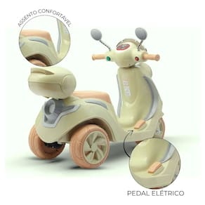 -Alcança uma velocidade máxima de 5km/h. -Com luzes e sons. -Idade mínima recomendada: Idade: +24 meses -Inclui carregador. -Tem 37cm de largura, 47cm de altura e 69cm de comprimento, Peso 6,1kg -Momentos de diversão garantidos. -A duração da bateria depende do uso que se dê ao produto. -Moto Eletrica Scooter 6V -Botão frente e ré -Farol que acende de verdade -Módulo de som com entrada para USB e AUX (cabo MP3 não incluso) -Conectividade Bluetooth -Indicador de Bateria -Dispositivo de proteção do sistema elétrico -Movido por bateria recarregável -Farois que acendem de verdade -Categoria: Elétrico -Peso máximo suportado: 30kg -Velocidade máxima: 3,5 km/h -Bateria: 6V 4Ah selada -Duração da bateria: 1 hora “NO MÁXIMO” -Tempo de recarga: Primeira recarga 6 horas; demais 4 a 6 horas -Acelerador: Acionamento via pedal -Simula Partida -Carregador de bateria bivolt (110/220V) -Montagem: Este brinquedo vem desmontado. Basta seguir as instruções do manual. Montagem simples e fácil.