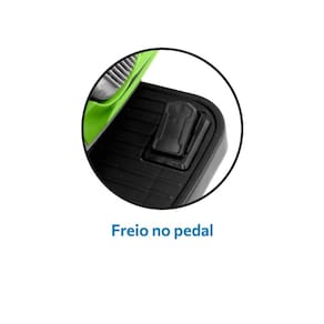 Botão liga e desliga do produtoFarol dianteiroBotão liga e desliga do farol dianteiroLimitador de giro do guidãoBotão frente/réEntrada USBConexão BluetoothSeletor de música e indicador de bateriaAceleração progressiva na manoplaFreio no pedalDispositivo de proteção do sistema elétricoMovida por bateria recarregável 12VAcompanha carregador automático 127/220V