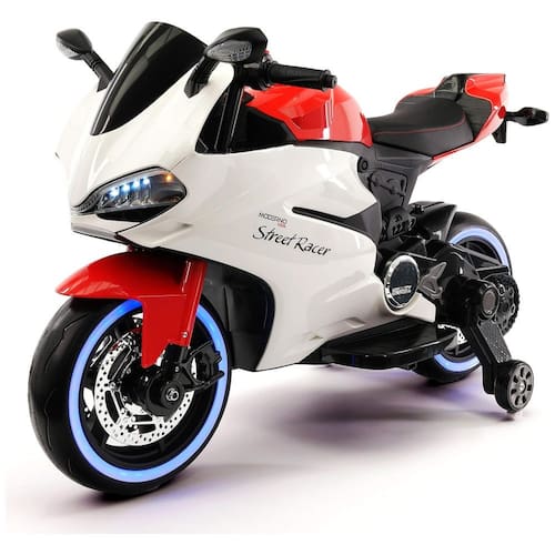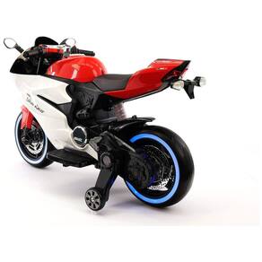 Bicicleta de motocicleta elétrica movida a bateria para crianças para crianças de 3 a 6 anos sob supervisão de um adulto com peso máximo do piloto de 29 kg 2 motores potentes, 2 velocidades de avanço alta , baixa, 1 velocidade reversa, velocidade máxima 3 a 6 km, h. Partida suave e sistema de freio elétrico para aceleração gradual e frenagem confiável Couro PU macio, suspensão traseira com amortecimento, pneus de borracha de espuma EVA macia de manutenção zero com luzes LED proporcionam boa tração e passeio silencioso confortável Leitor de música MP3 integrado com rádio FM Bluetooth, reproduz arquivos do cartão Micro SD, unidade flash USB ou dispositivos externos como iPod, iPad, iPhone ou telefones Android Tecnologia de carregamento de bateria inteligente, controla automaticamente a carga da bateria e evita sobrecarga. Tempo de carregamento da bateria 6 8 horas controlado automaticamente, tempo de viagem de até 1,5 horas dependendo das condições de viagem Dimensões montadas Comprimento , Altura , Largura com espelhos Marca: Não Informado