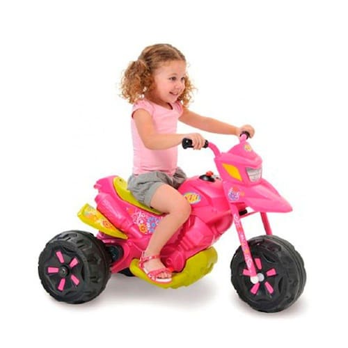 Câmbio com duas marchas: frente e ré Movida por bateria selada 6V (acompanha carregador automático 127/220v) Fusível de proteção do motor Velocidade aproximada: 3,5 km/h Estrutura em dupla camada: maior durabilidade e resistência Idade sugerida: a partir de 3 anos Peso máximo: 25 kg Altura máxima: 119 cm