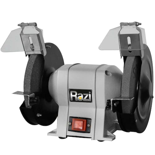 O Moto esmeril da Razi possui baixo nível de ruído, base em ferro fundido e suporte de afiação ajustável. É equipado com botão de segurança junto com a chave liga/ desliga, proporcionado segurança ao operador. Utilizado para desbastar, afiar e dar acabamento.