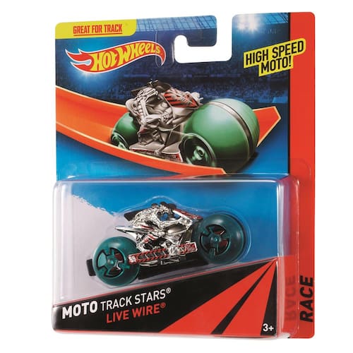Estas motos Track Stars® são compatíveis com as pistas e podem fazer loops, manobras e até serem lançadas através de impulsionadores. Suas grandes rodas e estruturas cuidadosamente fabricadas vencem a gravidade e garantem que as motos não caiam, fornecendo ação contínua e muita emoção em duas rodas. O sortimento com 20 modelos traz uma grande variedade de estruturas, cores, detalhes e estilos para satisfazer qualquer tipo de piloto.