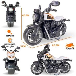 Com medidas de 5 cm de altura, 4,5 cm de largura e 8,5 cm de comprimento, essa moto é ideal para brincar em ambientes internos ou ao ar livre. Seu material resistente em plástico garante durabilidade e segurança durante as brincadeiras. Além disso, possui o selo do Inmetro 002270/2023 , garantindo a qualidade e a segurança do produto.