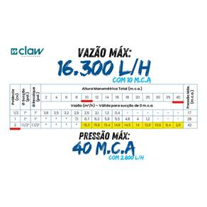 MOTOBOMBA CENTRIFUGA CLAW 2,0HP ROTOR EM BRONZE BOCAL 50MM (1.1/2")
