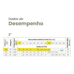 Aplicação Recomendada para bombeamento e recalque de água limpa isenta de sólidos em poços, abastecimento de cisternas, captação de água de rios, mineração, industrias e pequenos sistemas de irrigação.