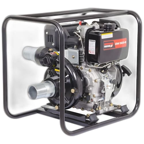 Especificações Código: 65-70260 Modelo: DW 303-B Tipo: Motobomba diesel, centrífuga, água limpa Diâmetro de saída: 3'' x 3'' Diâmetro de entrada: 3'' x 3'' Altura manométrica total: 75 m.c.a. Altura total de sucção: 7 m Vazão máxima: 46,68 m/h Motor: Kawashima Serie E Tipo do motor: Monocilíndrico, 4T, refrig. a ar, diesel Cilindradas: 418 cc Potência máxima: 10 HP Sistema de partida: Manual Capacidade do tanque de combustível: 5,5 L Dimensões: 635 x 460 x 585 mm Peso líquido: 69 kgItens Inclusos 1 Motobomba Diesel 3''x3'' 10HP Kawashima DW303B completaPerguntas Frequentes (FAQ) Pergunta: Qual o tipo de água que esta motobomba é indicada para bombear?