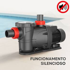 Motobomba para circulação e filtragem de piscinas. Corpo em plástico resistente (PP). Eixo em aço carbono SAE 1045. Motor com protetor térmico e classe de isolação F. Grau de proteção IPX5. Selo mecânico em grafite cerâmica buna. Altura máxima de sucção: 3,5 m. Temperatura máxima do líquido: 35°C. Regime de operação S1.Acompanha copo
