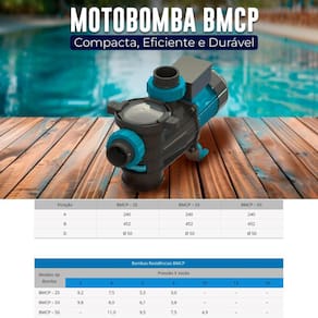 Esta motobomba acompanha 2 uniões para encaixe no tubo de 50 mm; Ela tem sua ligação elétrica monofásica 220 volts qualquer duvida consulte-nos no campo de perguntas Compativel com filtros da sodramar : fm25 e fm30 para outros filtros consulte-nos no campo de perguntas Para circulação de água, a sodramar, oferece o que há de mais avançado em tecnologia de motobombas, purificando a água e priorizando a qualidade do lazer e a saúde dos usuários. Constituída de materiais resistentes e à prova de corrosão, as motobombas têm potência que variam de 1/4cv até 1/2cv, com alta vazão, atuando com eficiência e segurança na piscina. Informações gerais: Comprimento = 45,2 cm Largura = 18 cm Altura = 24 cm Pressão mca x m/h = 2 mca = 11,9 m/h 4 mca = 11,2 m/h 6 mca = 8,8 m/h 8 mca = 7,1 m/h Motobomba segue com pré filtro e cesto coletor; Volume do cesto 750 ml; Carcaça em plástico resistente, visor transparente e eixo em aço carbono; Classifcação a no inmetro; Motor aberto ip-21; Auto escorvante, funciona até 1 metro acima do nível da água; Produto possui de 12 meses direto com a fábrica a sodramar possui assitência técnica em todo território nacional