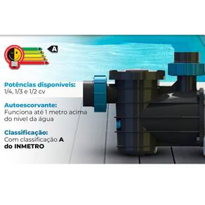 Esta motobomba acompanha 2 uniões para encaixe no tubo de 50 mm; Ela tem sua ligação elétrica monofásica 220 volts qualquer duvida consulte-nos no campo de perguntas Compativel com filtros da sodramar : fm25 e fm30 para outros filtros consulte-nos no campo de perguntas Para circulação de água, a sodramar, oferece o que há de mais avançado em tecnologia de motobombas, purificando a água e priorizando a qualidade do lazer e a saúde dos usuários. Constituída de materiais resistentes e à prova de corrosão, as motobombas têm potência que variam de 1/4cv até 1/2cv, com alta vazão, atuando com eficiência e segurança na piscina. Informações gerais: Comprimento = 45,2 cm Largura = 18 cm Altura = 24 cm Pressão mca x m/h = 2 mca = 11,9 m/h 4 mca = 11,2 m/h 6 mca = 8,8 m/h 8 mca = 7,1 m/h Motobomba segue com pré filtro e cesto coletor; Volume do cesto 750 ml; Carcaça em plástico resistente, visor transparente e eixo em aço carbono; Classifcação a no inmetro; Motor aberto ip-21; Auto escorvante, funciona até 1 metro acima do nível da água; Produto possui de 12 meses direto com a fábrica a sodramar possui assitência técnica em todo território nacional Marca: Não Informado