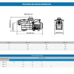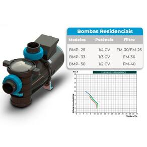 Esta motobomba acompanha 2 uniões para encaixe no tubo de 50 mm; Ela tem sua ligação elétrica monofásica 220 volts qualquer duvida consulte-nos no campo de perguntas Compativel com filtros da sodramar : fm36 para outros filtros consulte-nos no campo de perguntas Para circulação de água, a sodramar, oferece o que há de mais avançado em tecnologia de motobombas, purificando a água e priorizando a qualidade do lazer e a saúde dos usuários. Constituída de materiais resistentes e à prova de corrosão, as motobombas têm potência que variam de 1/4cv até 1/2cv, com alta vazão, atuando com eficiência e segurança na piscina. Informações gerais: Comprimento = 45,2 cm Largura = 18 cm Altura = 24 cm Pressão mca x m/h = 2 mca = 12 m/h 4 mca = 11,6 m/h 6 mca = 9,2 m/h 8 mca = 7,2 m/h Motobomba segue com pré filtro e cesto coletor; Volume do cesto 750 ml; Carcaça em plástico resistente, visor transparente e eixo em aço carbono; Classifcação a no inmetro; Motor aberto ip-21; Auto escorvante, funciona até 1 metro acima do nível da água; Produto possui de 12 meses direto com a fábrica a sodramar possui assitência técnica em todo território nacional