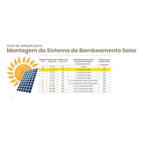 - Corpo da motobomba em aço inox e recalque em bronze - Controlador interno com função MPPT** - Vedação com selo mecânico duplo